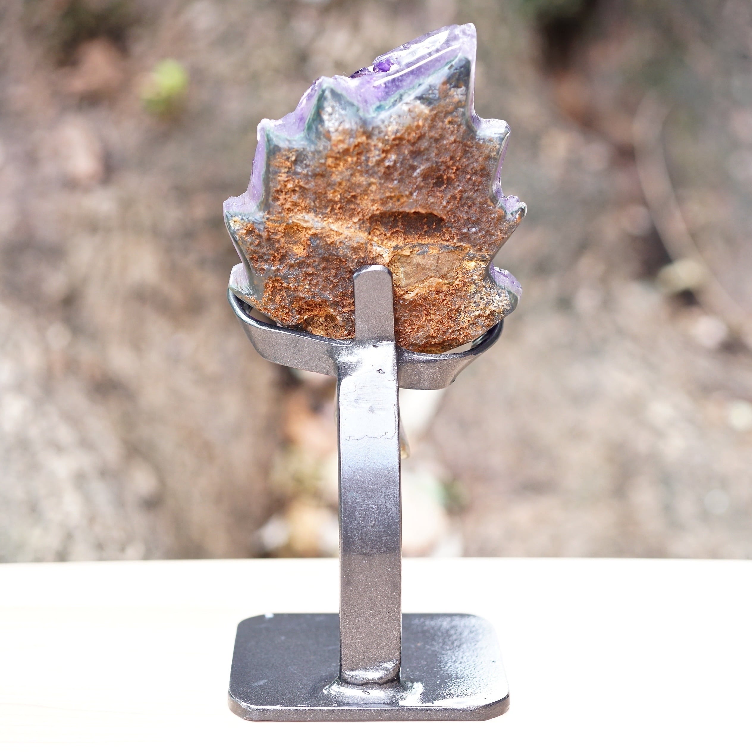 葉っぱのような形に加工されたウルグアイ産アメジストです。